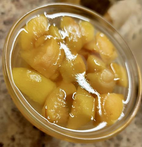 Я, видимо, не очень плотно уложила персики, они у меня очень осели при стерилизации, потому в процессе слои я добавляла. усмешка