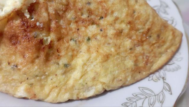 Сковороду смазать растительным маслом. Выложить в сковороду омлетную массу, накрыть крышкой. Готовить на огне ниже среднего. Когда низ подрумянится, а верх подсохнет, с помощью смазанной маслом крышки перевернуть омлет и жарить под крышкой до золотистого цвета.