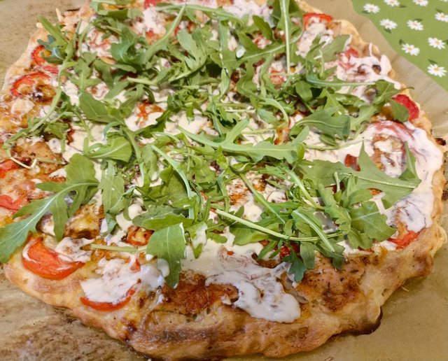 Очень вкусно!Внук предложил пиццу приготовить, активно помогал:катал тесто, тер сыр, все раскладывал-такой молодец банан(ему только 5). смех