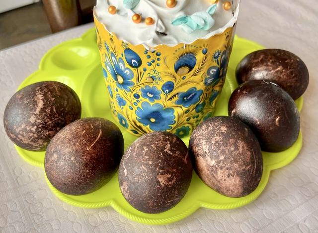 Попробовала окрашивать яйца в красном вине. Прикольно получилось! Как шоколадные.