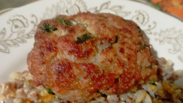 Захотілось чогось, що не треба жувати. І цибулю було ліньки терти. Тому дрібненько пошинкувала, змішала з фаршем, а замість булки додала варену гречку (прилаштувала вчорашній гарнір хихи). І вийшло прямо суперово! Як гречаники, тілько рум"яно і нежирно. Дякую, Стеллочко, нереально смачний рецепт:
