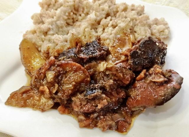 Печень с луком и яблоками