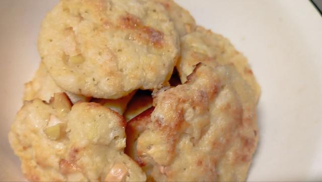 В тесто добавила яблоки и груши, запекала в силиконовых формах.