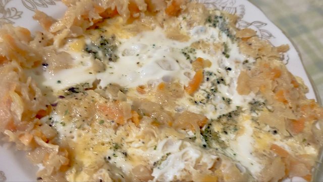 Остатки тушеной капусты удачно пристроила в омлет супер