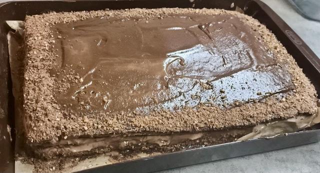 Повторить процедуру. Обмазать отложенным кремом бока. Верхушку бисквита полить с внутренней стороны пропиткой и перевернуть на торт. Поставить торт на часок в холодильник для стабилизации.