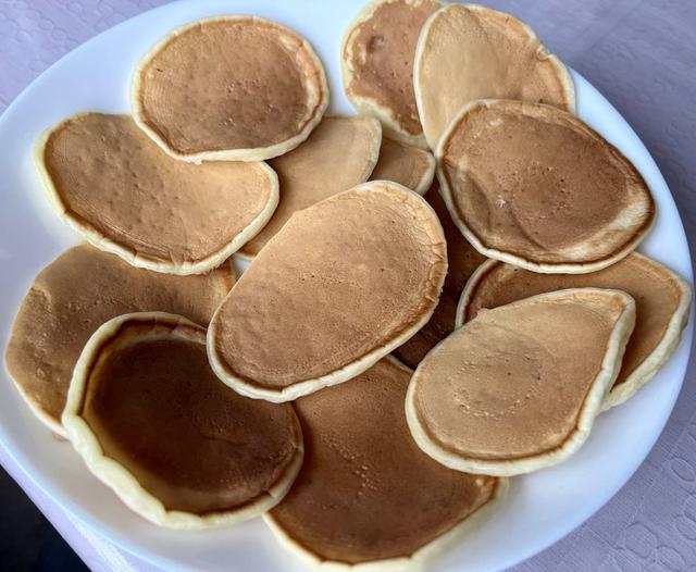 Жарить панкейки на смазанной растительным маслом разогретой сковородке с антипригарным покрытием, наливая тесто понемногу. У меня получилось 17 штук.