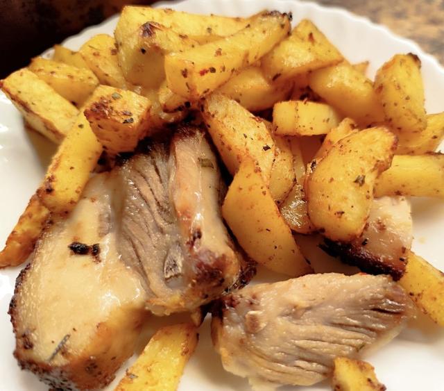 Мякоть свинины нарезать ломтиками толщиной 1 см. Обработать тендерайзером или истыкать ножом, посыпать с двух сторон специями и смазать растительным маслом. Оставить мясо на часок мариноваться (я оставила в холодильнике на ночь).