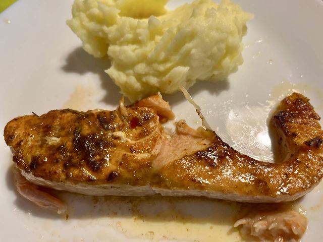 Лосось на луковой подушке в аэрогриле