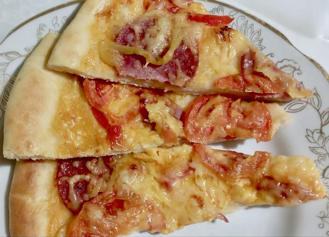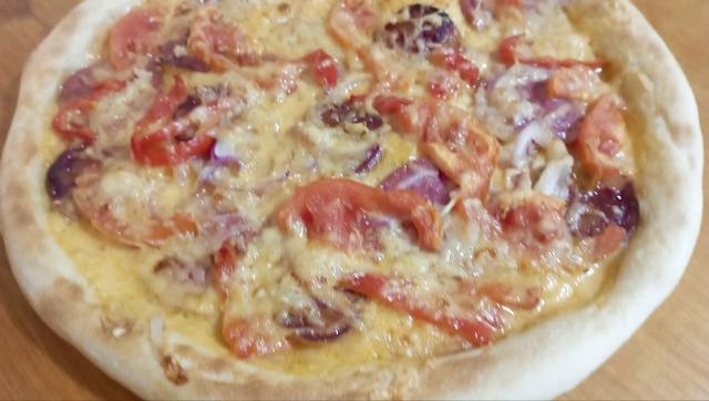 Пицца с помидорами и салями