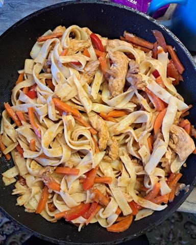 Куриные грудки с овощами и лапшой удон