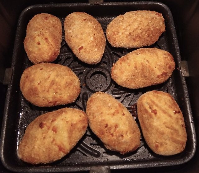 В измельчитель поместить овсянку, оставшийся сырой лук, чеснок, специи, баклажаны с луком. Пюрировать. Смешать полученную массу с мясным фаршем. Если масса получилась жидковатой, добавить сухари, тщательно перемешать и отставить на несколько минут. Смазанными маслом руками сформовать котлеты (у меня получилось 12 штук). Котлеты можно как обычно поджарить на сковороде или (мой случай) запечь в аэрофритюрнице при температуре 180 °С 20 минут с переворотом через 10 минут.