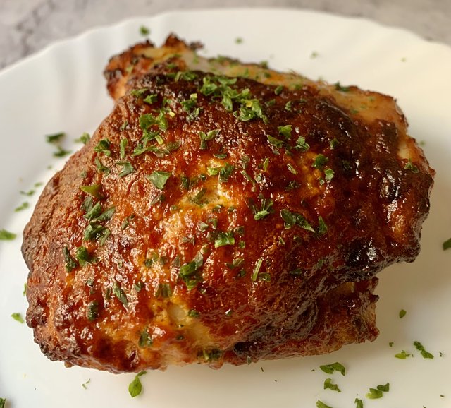 Готовить бёдра в аэрогриле (я выложила на бумагу для выпечки) при температуре 180 °С 30 минут.