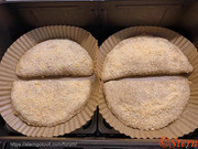 Посыпать заготовки панировкой, прижать. Выложить кальцоне в мультипечь на бумагу для выпечки.
