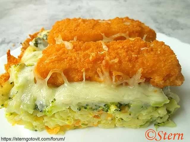 Запеканка с рыбными палочками и рисом