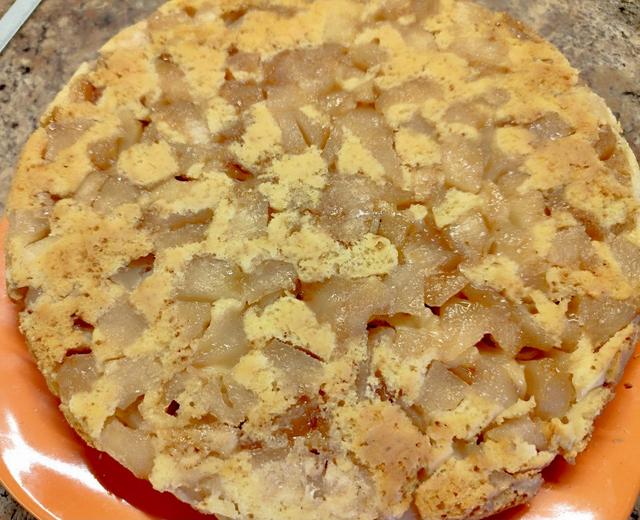 Готовый кекс оставить на несколько минут в форме, затем перевернуть яблоками кверху, удалить бумагу и остудить.