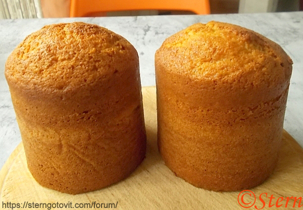 Две формы диаметром 10 см выложить бумагой для выпечки. Я как всегда пекла в жестяных банках объёмом 800 мл. Выложить тесто в формы, разровнять, постучать легонько о стол.