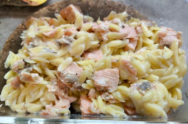 Лосось в сливочном соусе с пастой