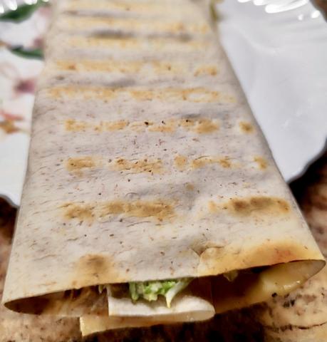 Подкупило меня здесь то, что не нужно майонеза и в жару это просто находка. У меня совсем просто. Лепёшку посыпать слегка натёртым на мелкой тёрке сыром. Сверху, что душа пожелает. У меня зелёный лук, черемша, отварная говядина, помидоры. Сверху снова посыпать натёртым на мелкой тёрке сыром. Завернуть и прогреть секунд 30 в микроволновке, чтобы подтаял сыр. ням  Рецепт тортильяс здесь.