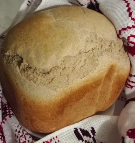 В этот раз у меня хлеб получился не такой красивый (в процессе свет два раза отключался ненадолго). Но всё равно испекли. супер Я только все ингредиенты в ХП загрузила, весь процесс муж контролировал. подмигивает