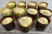 Вчера поздно вечером только испекла. Такие нежнюсенькие получилось, что пришлось на подушке остужать, ещё и переворачивать. Жаль, что у меня нет пуховых подушек, для этого дела они незаменимы. И пасочка на первом плане - яркое подтверждение того, что для хорошего, красивого купола очень важна форма, в которой выпекаем: если тесто такой консистенции, как в этом рецепте - желательно , чтобы формы были высокими.