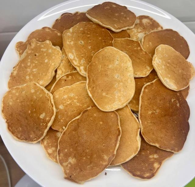 Малым очень понравились панкейки ням супер, делала для них 2/3 порции, несколько штук осталось. Теплыми были мягонькие, холодные невкусные, стали сухими, так что нужно готовить на раз. Буду повторять.