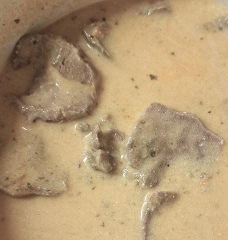 Язык под сливочным соусом с хреном