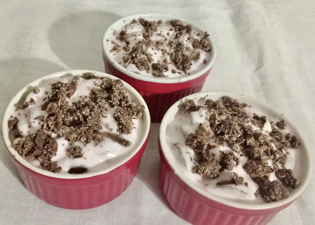 Приготовила с бананом - размяла вилкой в пюре один банан, 150 гр йогурта тропические фрукты, 250 гр кефира, сливки и ликер по рецепту, сахар добавляла только ванильный в сливки, ох и нямочка получилась  любовь