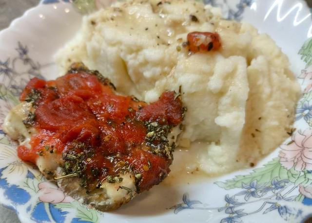 На гарнир как обычно Пюре из цветной капусты со сливочным сыром