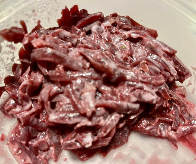 Свеклу натереть на жюльенной (корейской) тёрке, смешать с луком и яблоками, полить соусом, перемешать и наслаждаться!