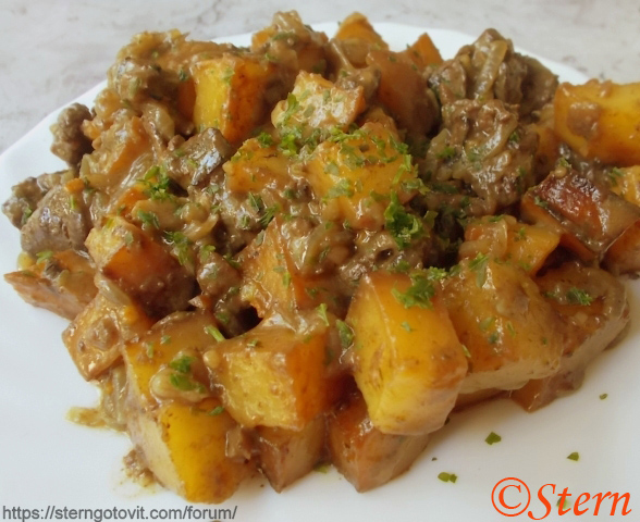 Куриная печень с картошкой