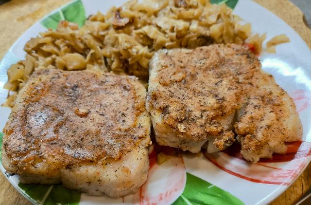 Рыбу (готовила филе трески) посолить, поперчить, сбрызнуть лимонным соком, отставить минут на 15.