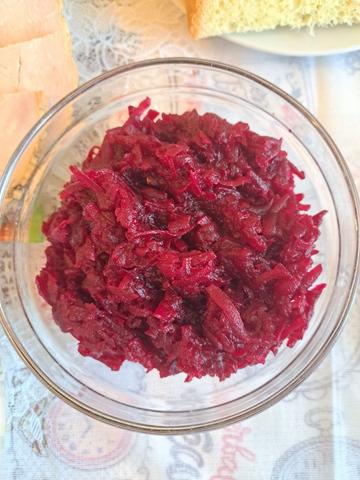 Но! Я купила хрен со свеклой в русском магазине. Хрена там было, как кот наплакал злится, пришлось доводить до вкуса подручными средствами.