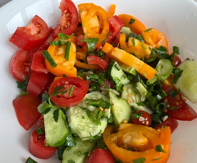 Салат вкуснейший! Уже 5 раз готовила. Прямо наслаждаюсь!
