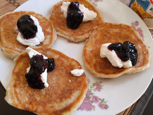 Тут же и попробовала с рикоттой и черничный вареньем