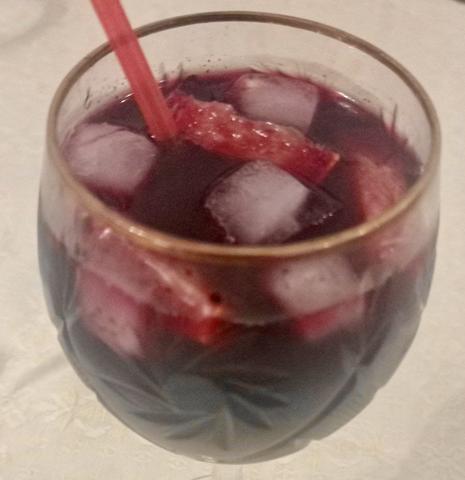 Наполнить винный бокал льдом. Влить ликёр и долить красным вином. Размешать и пить через соломинку.